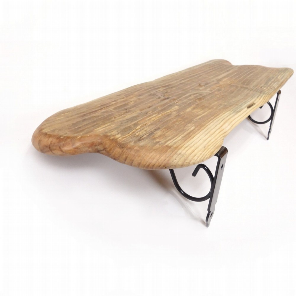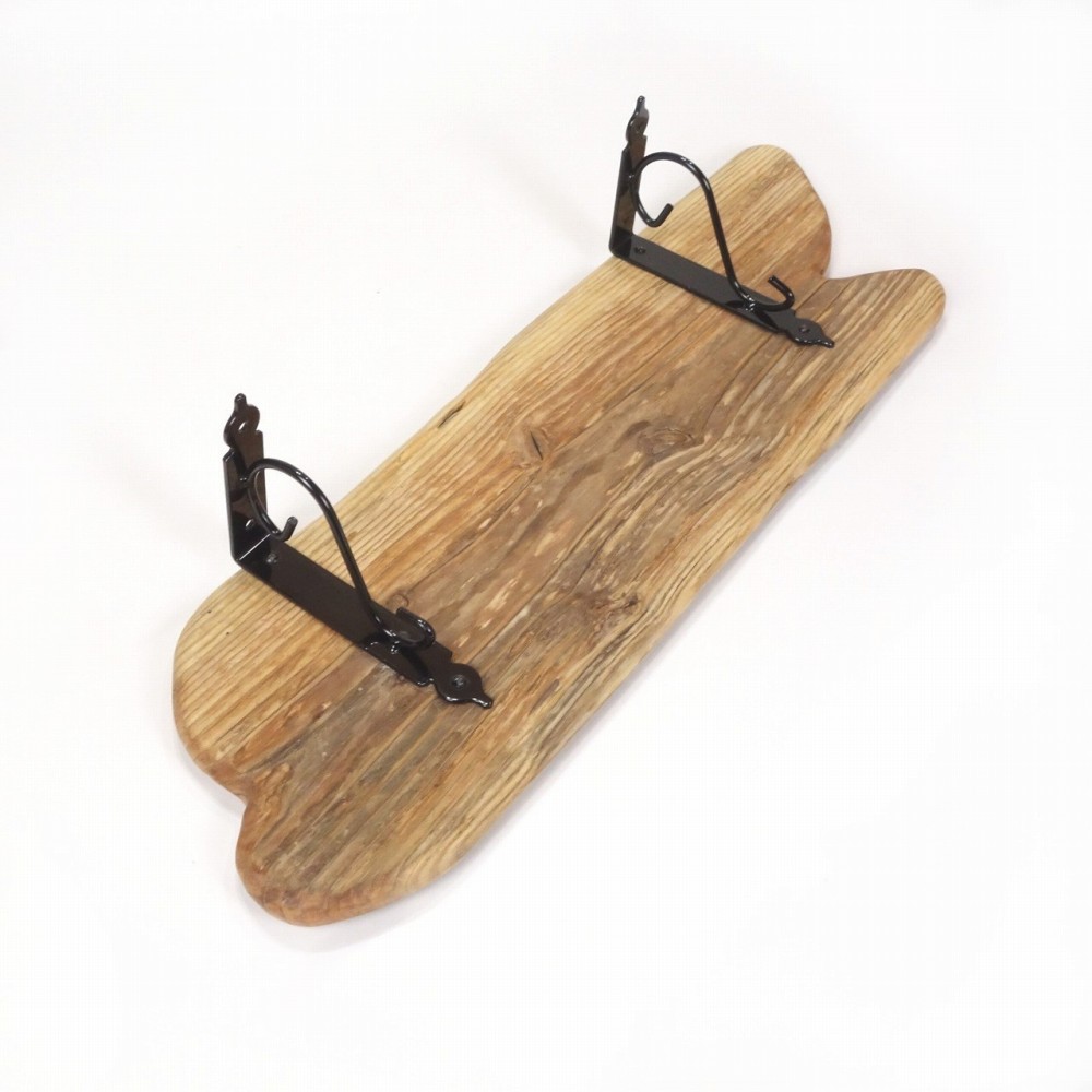 【温泉流木】ヒレのようなくびれがある流木壁掛けラック黒金具 壁掛け棚 ウォールラック 流木インテリア