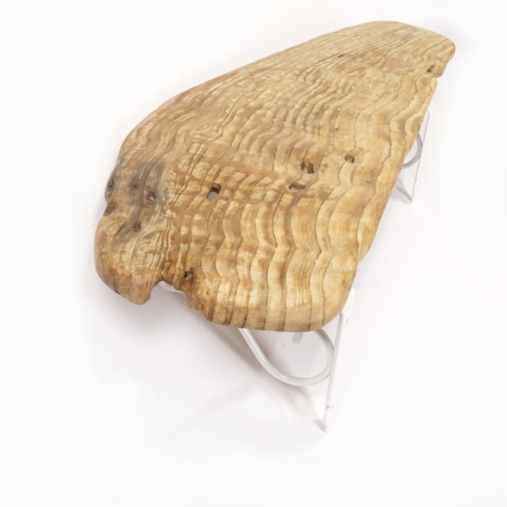 手前中央がふくらんだ板流木、その形状とともに年輪も広がっていきます。
