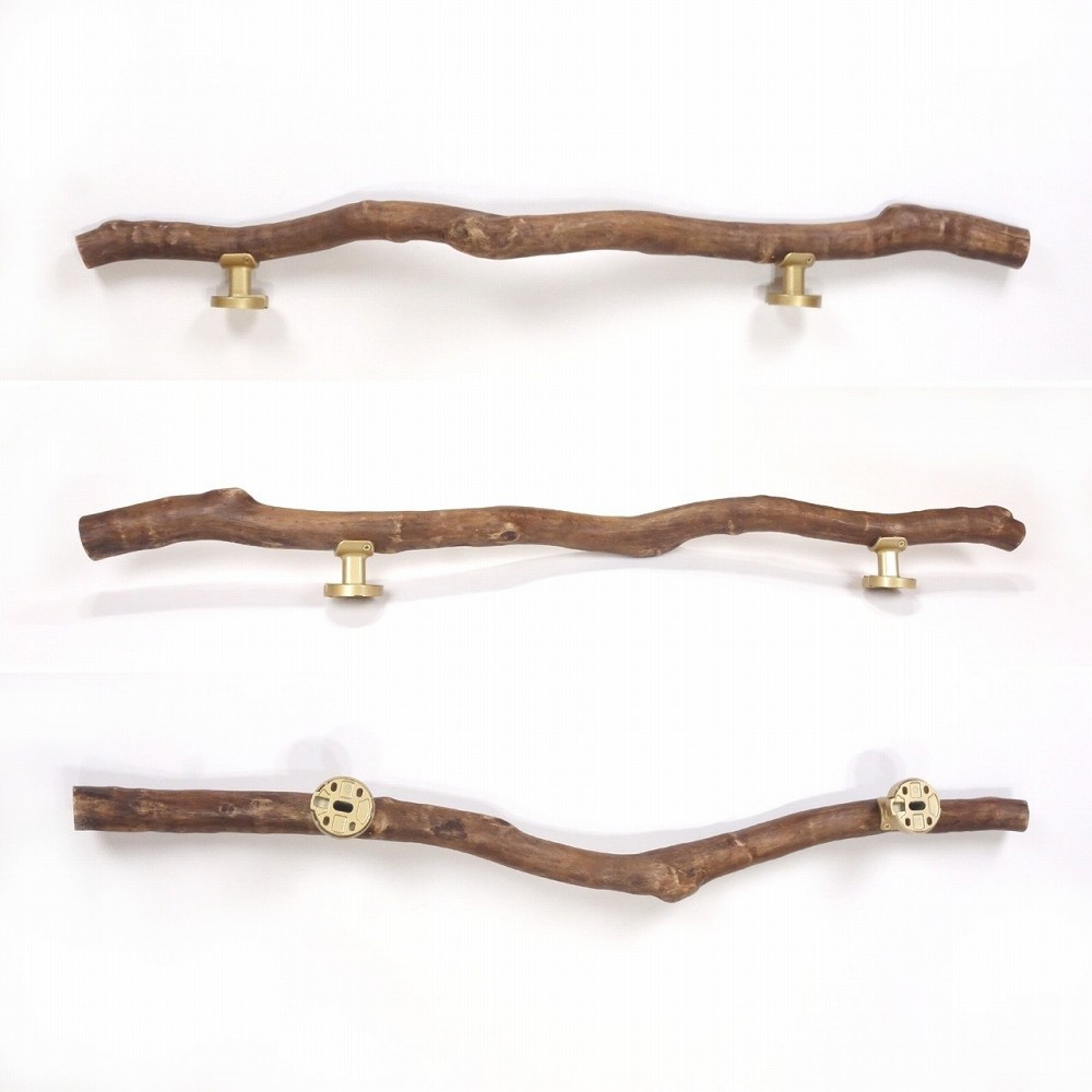 【温泉流木】枝分かれ曲がり踊る柿渋塗り流木ドアハンドル・手すり 木製 自然木 流木インテリア