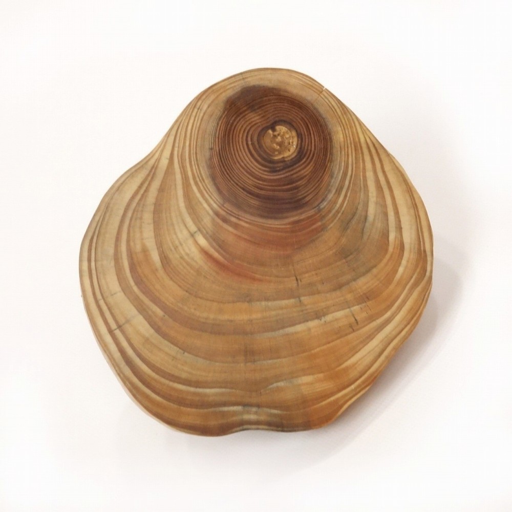しもぶくれ梨型の丸太流木、渦巻く年輪も梨型に広がります。