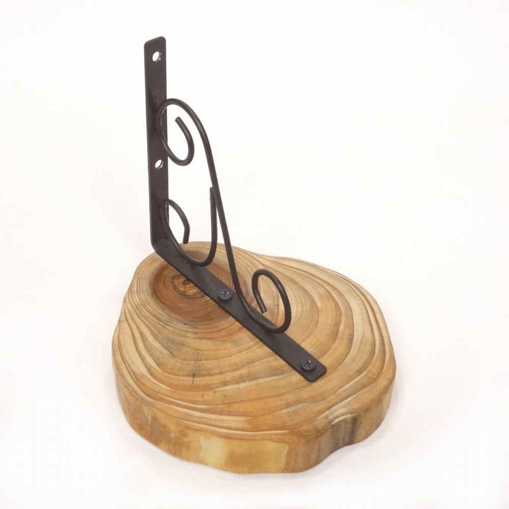 丸太下にはおしゃれなダークブラウンのアイアン製L字金具を取り付け、かわいい飾り台となりました。