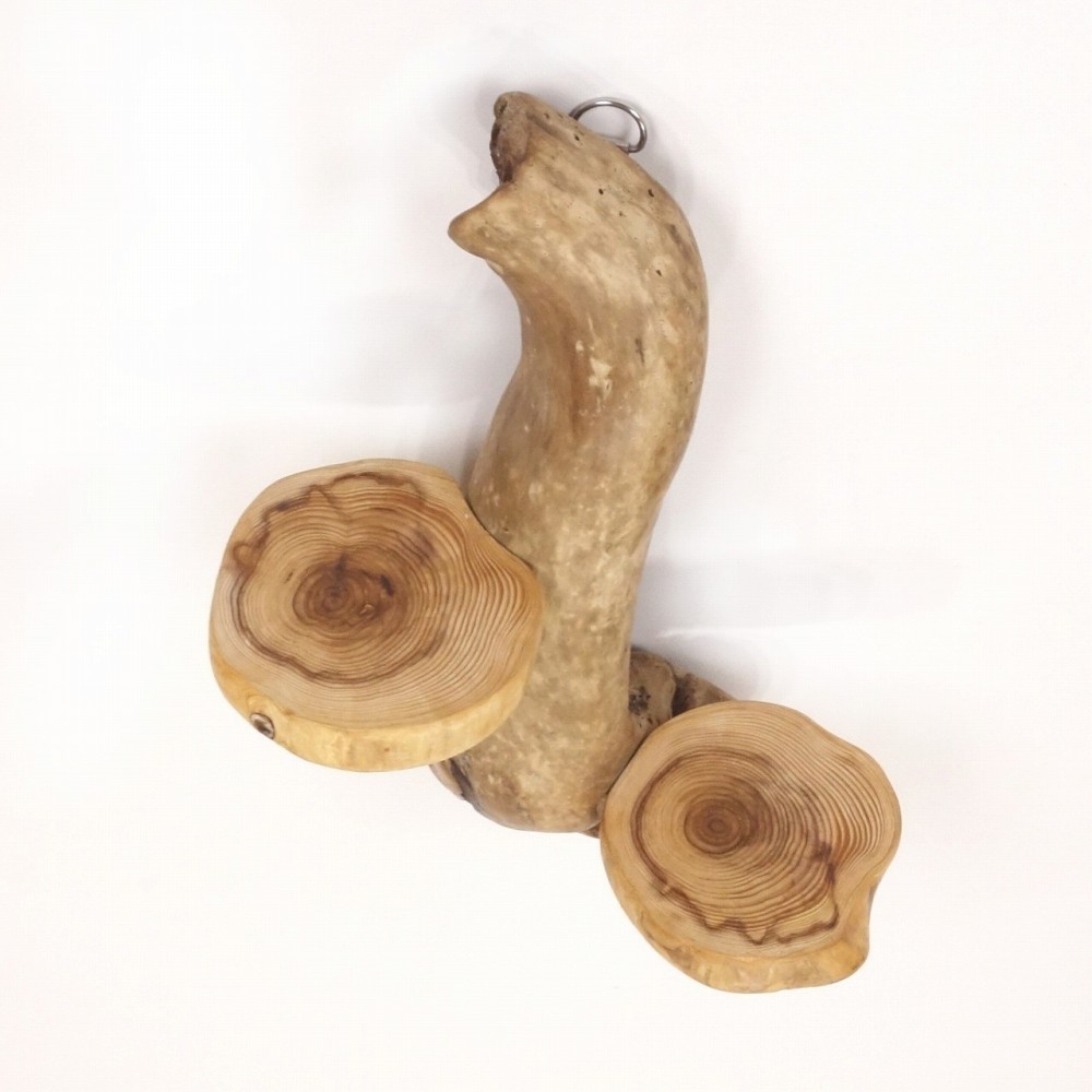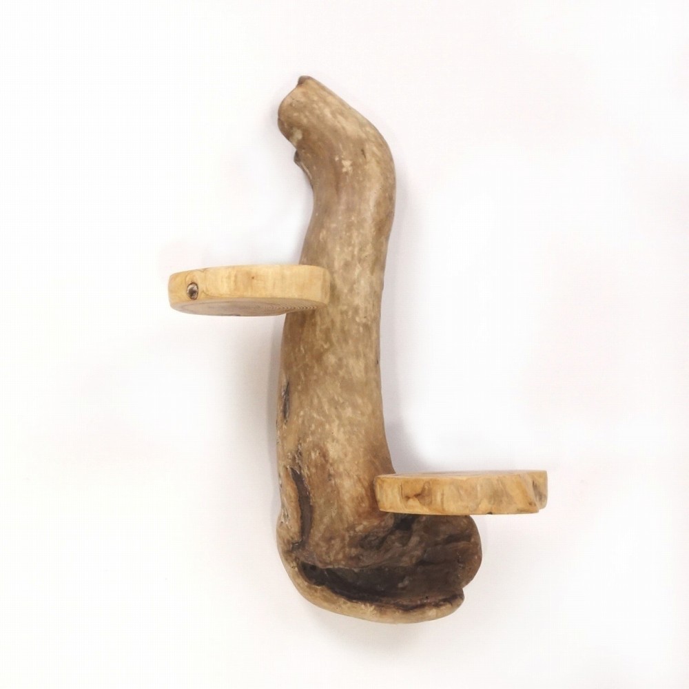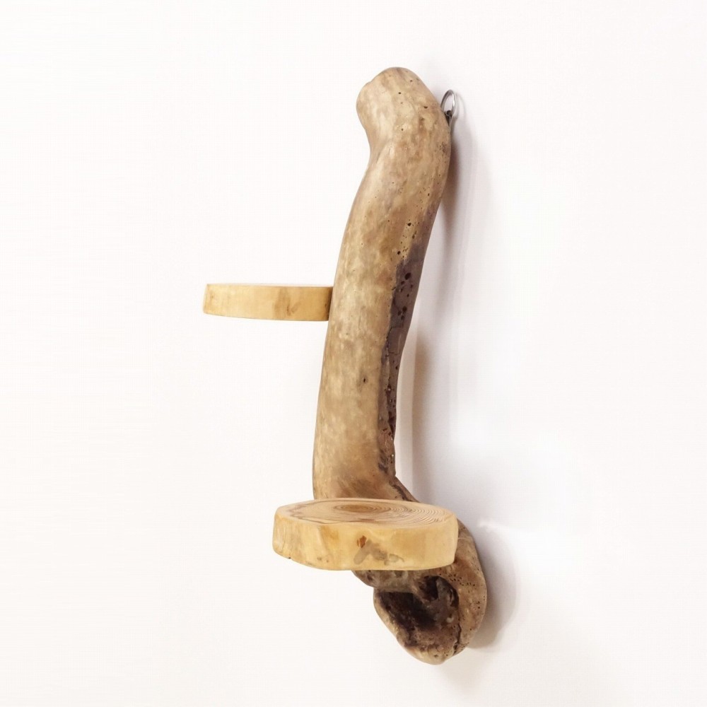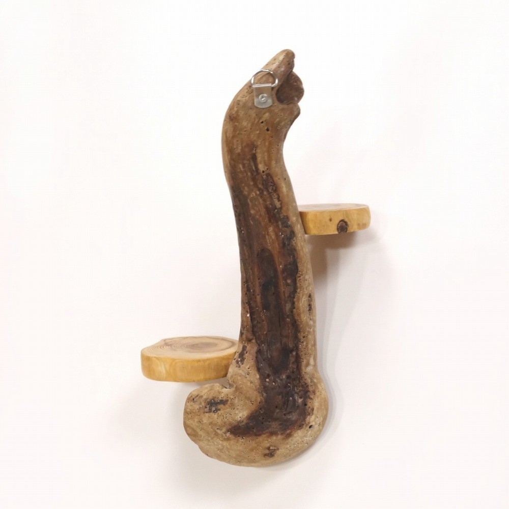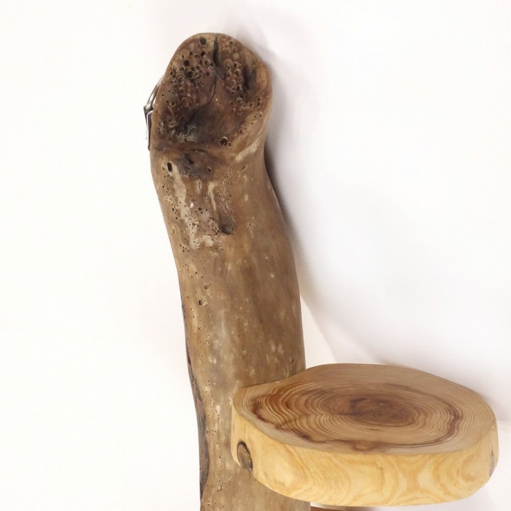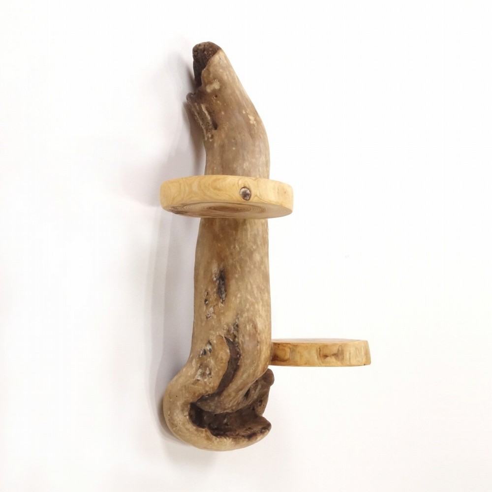 軸となる個性的な流木に 丸太流木を取り付けた、壁掛け飾り棚です。