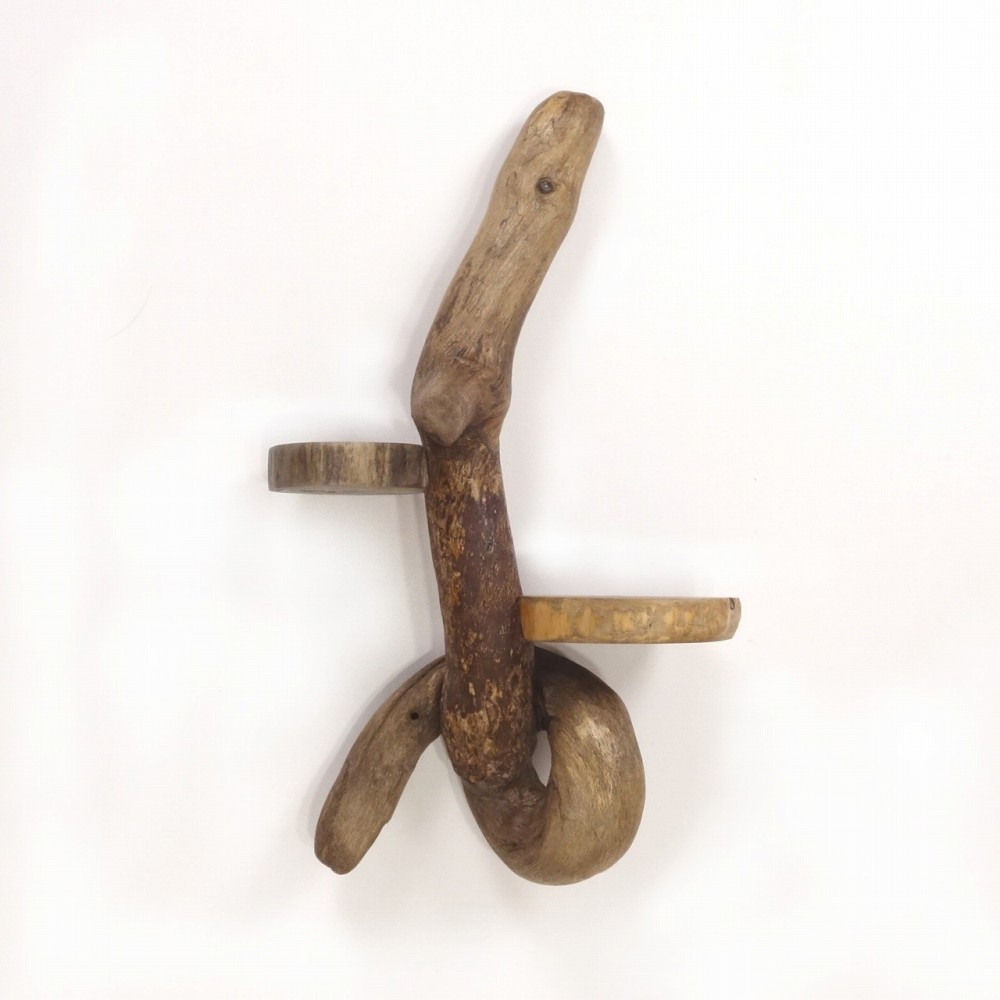 【温泉流木】個性的流木と丸太の壁掛け飾り棚004枝くるり R120338