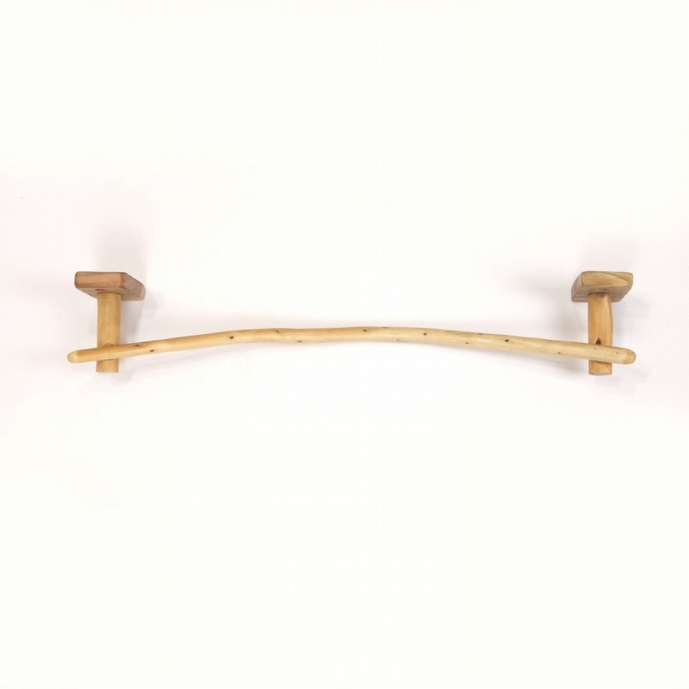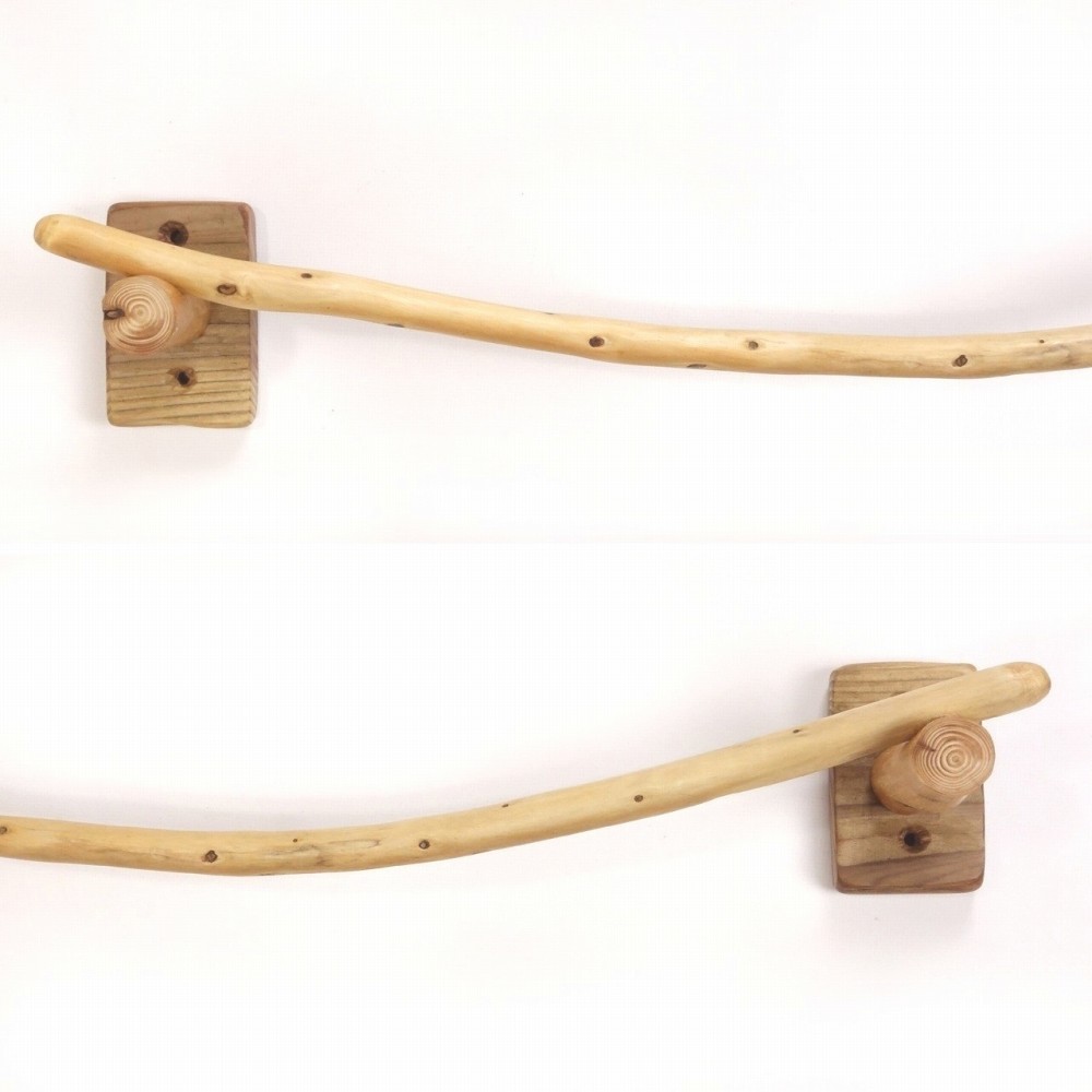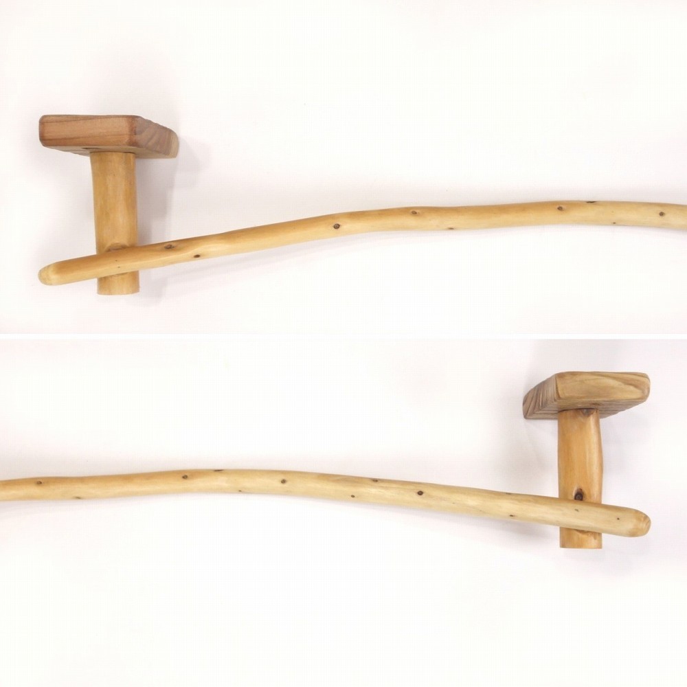 タオルを掛けるハンガー部は きれいに弧を描く湾曲の細枝流木、たくさんの枝跡が点々と見られます。