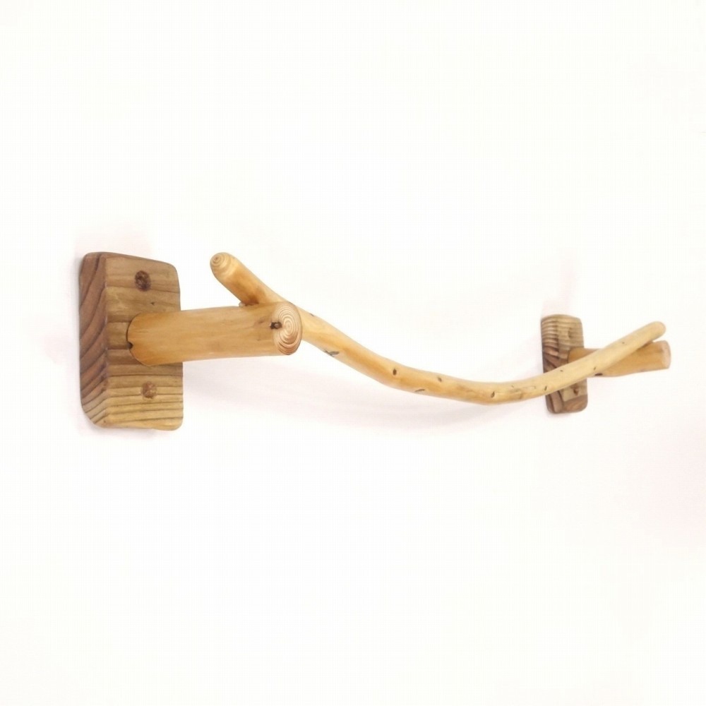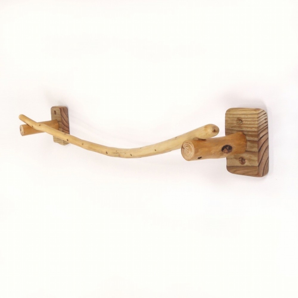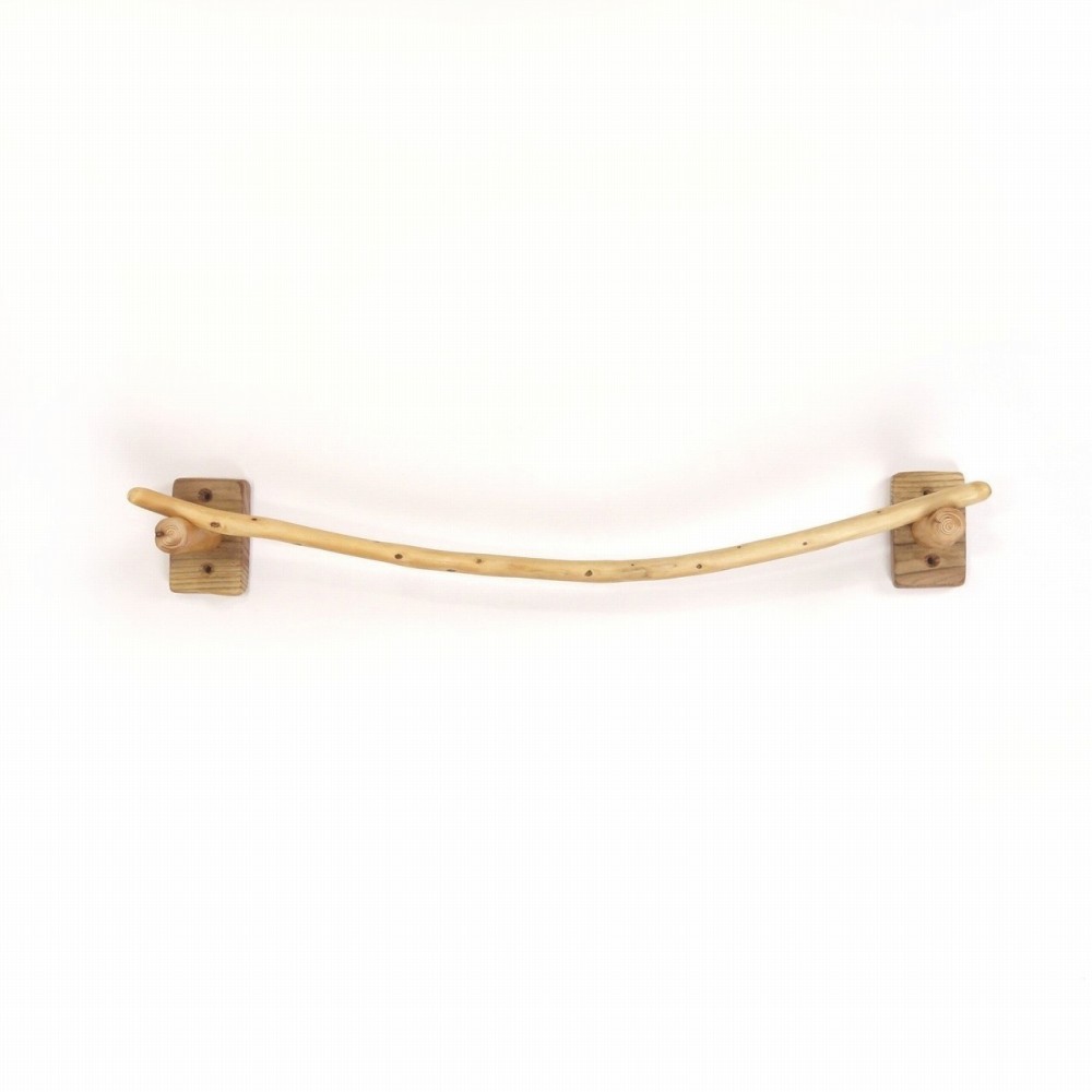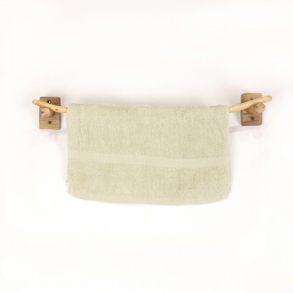 タオルを掛けるハンガー部は きれいに弧を描く湾曲の細枝流木、たくさんの枝跡が点々と見られます。