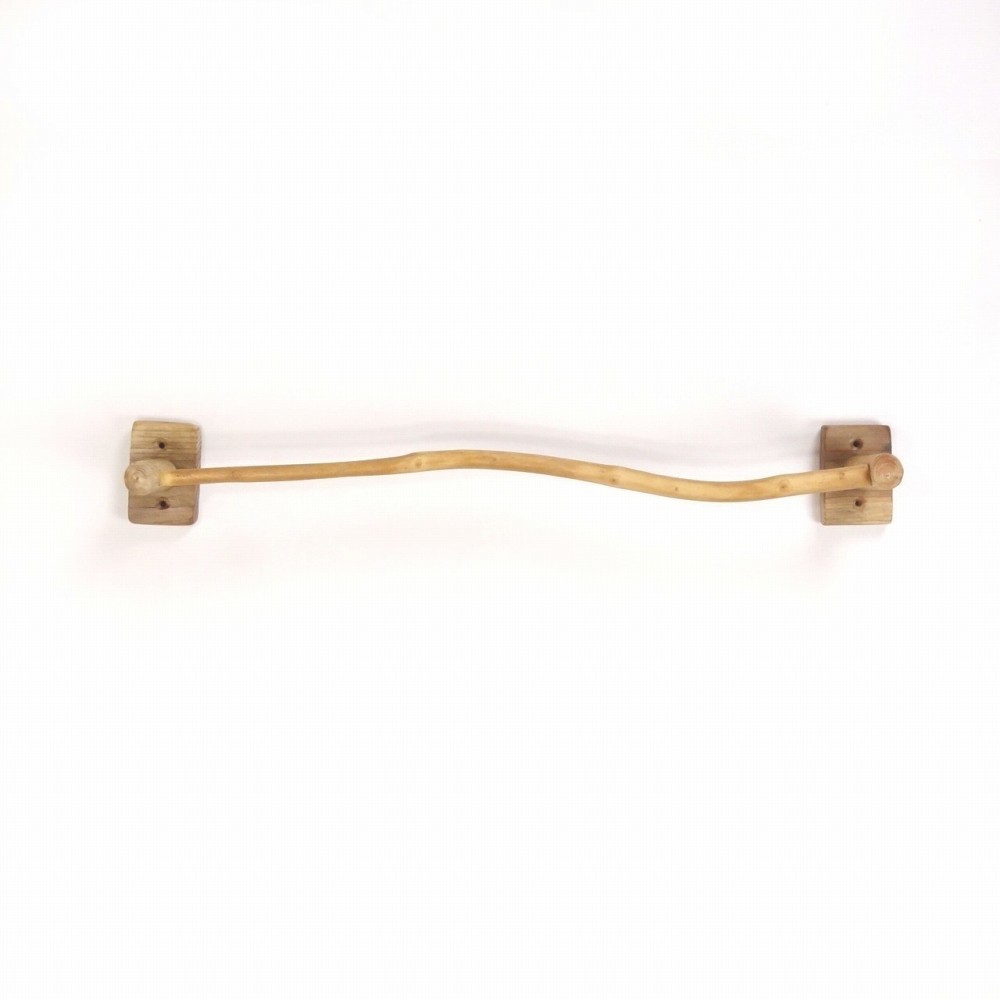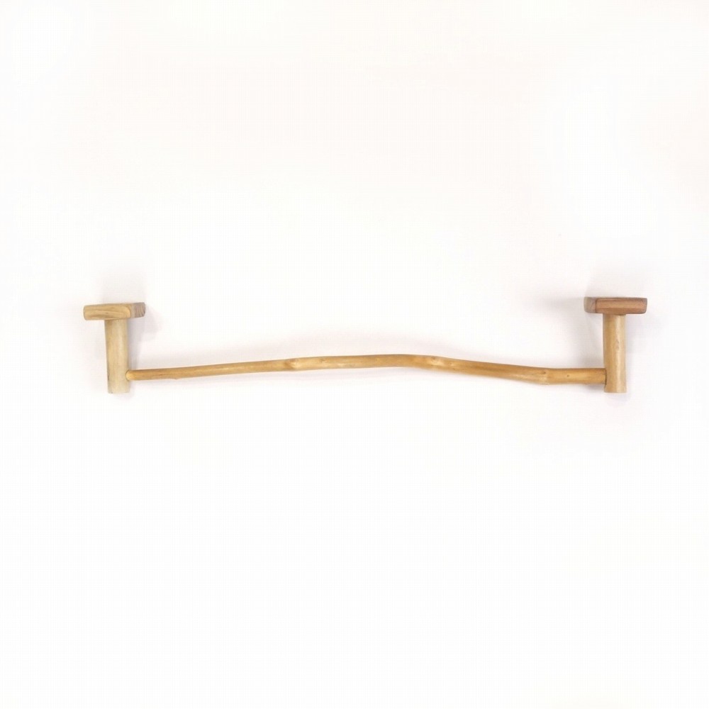 タオルを掛けるハンガー部は 波がゆらぐようにカーブする細枝流木、太さがだんだんと変化していきます。