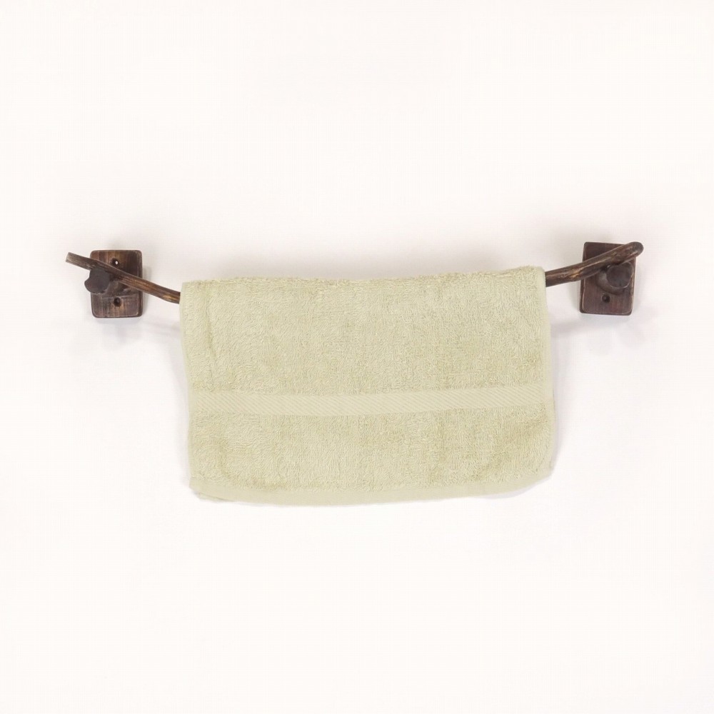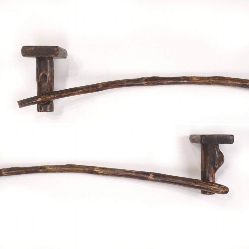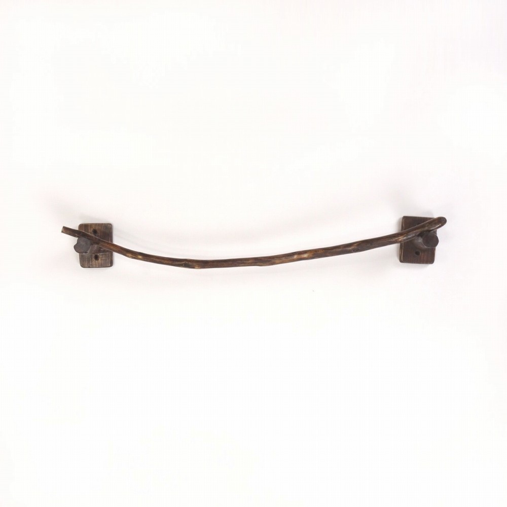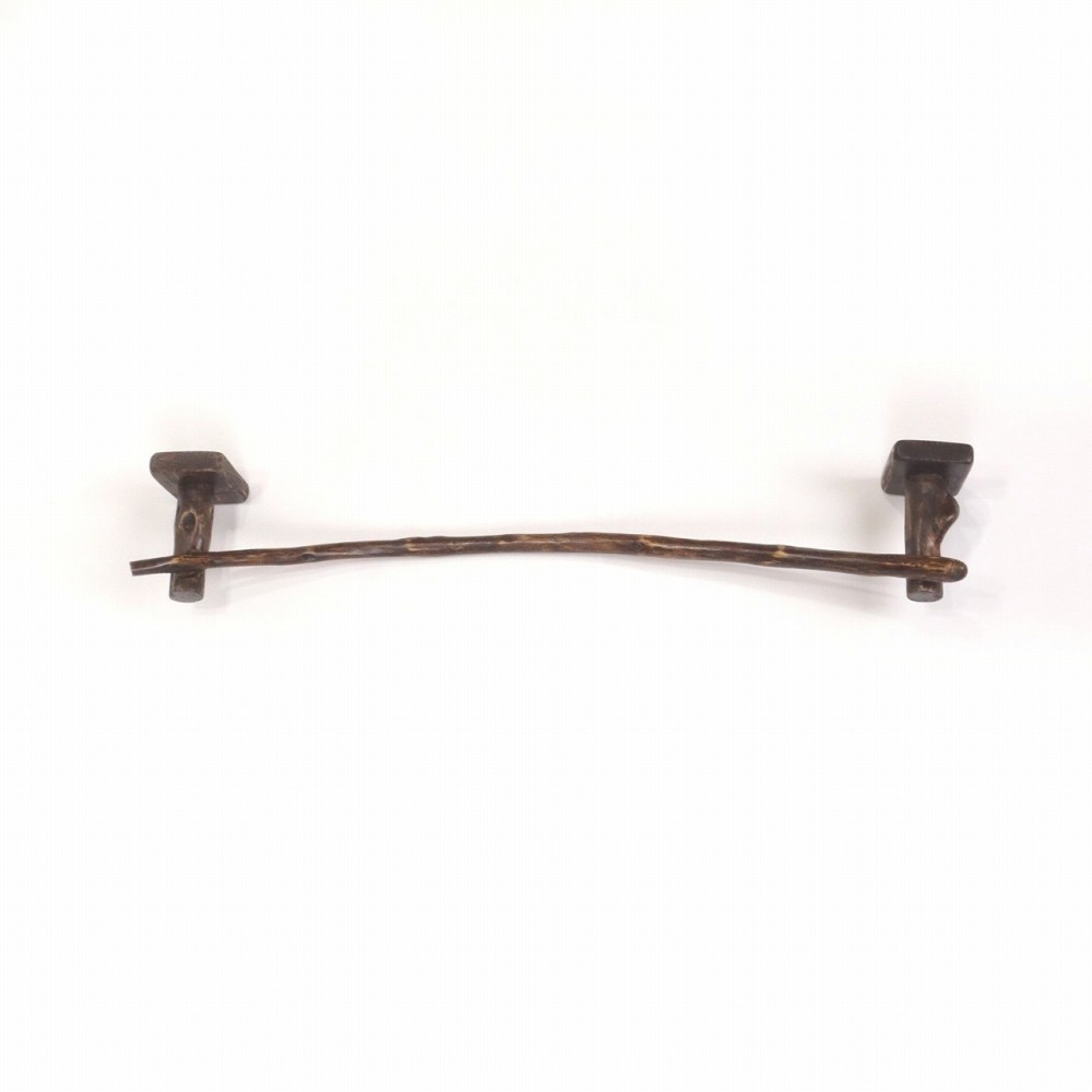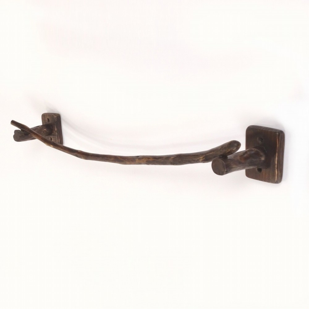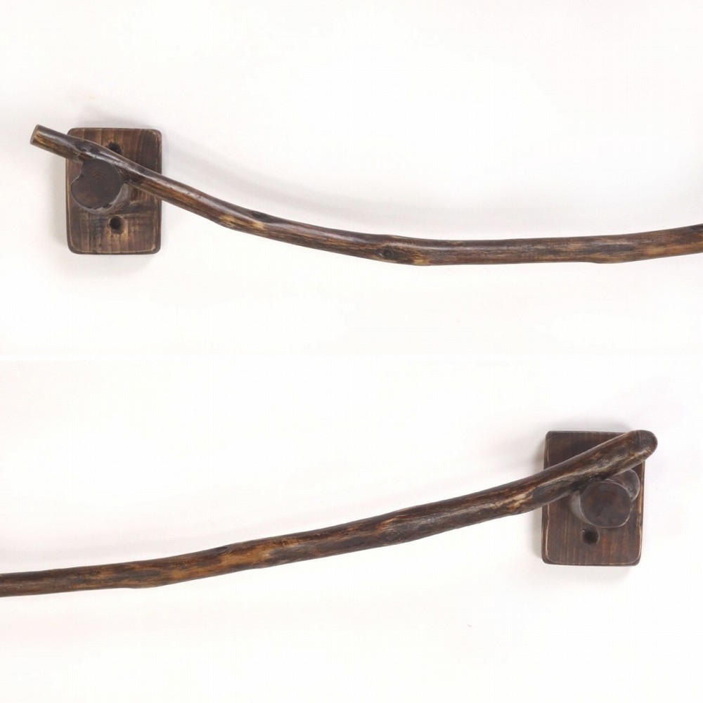 タオルを掛けるハンガー部は キレイな弧を描く湾曲細枝流木、たくさんの枝跡が見られます。