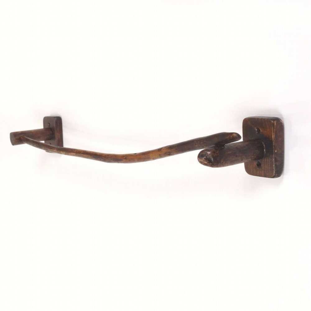 【温泉流木】流木で作った柿渋タオル掛け003右乗せ湾曲 タオルハンガー タオルラック 流木インテリア