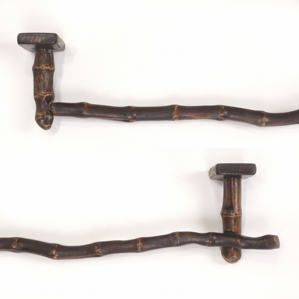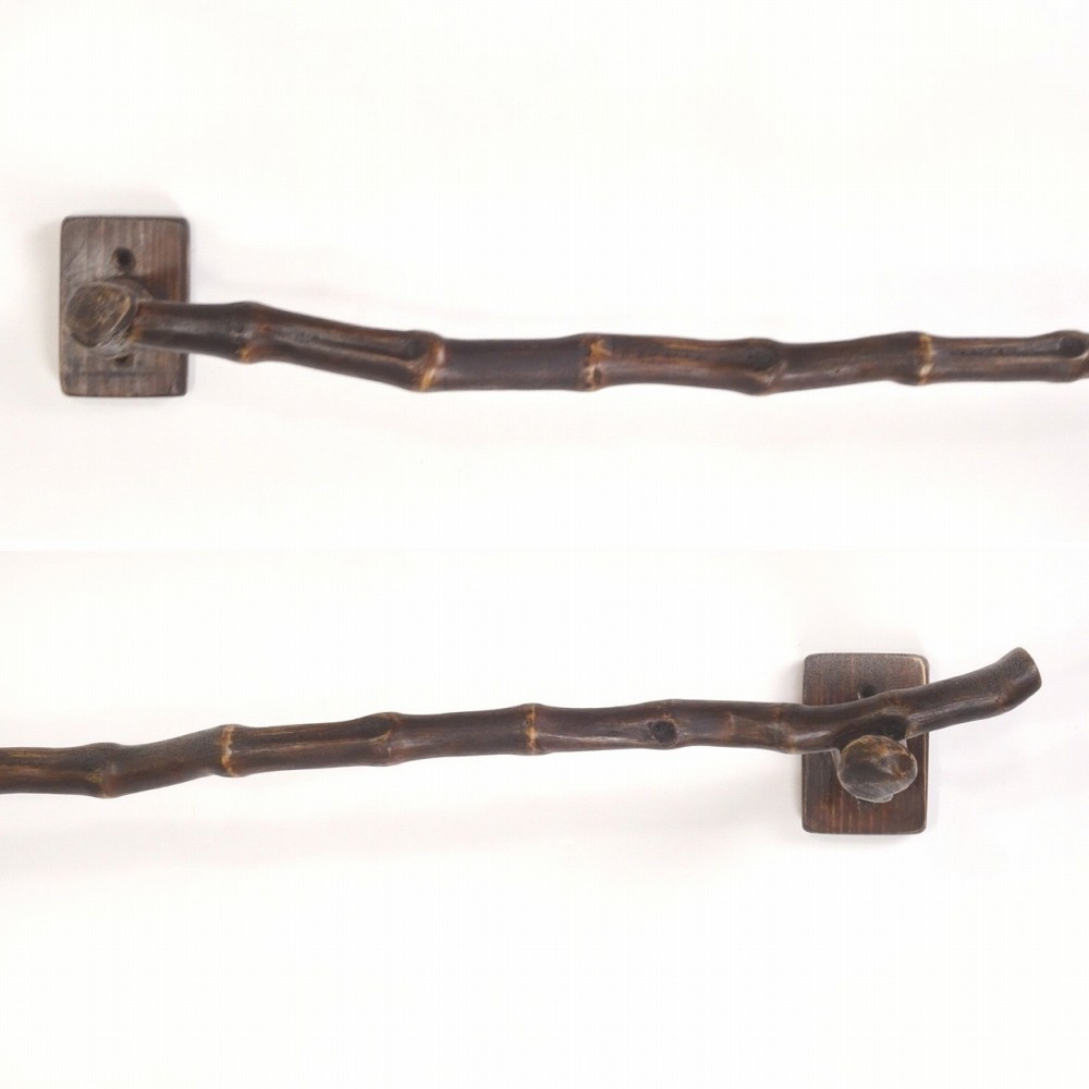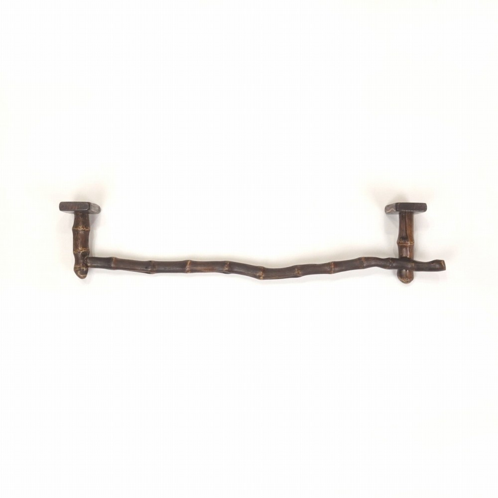 【温泉流木】流木で作った柿渋タオル掛け004右乗せ竹流木 タオルハンガー タオルラック 流木インテリア