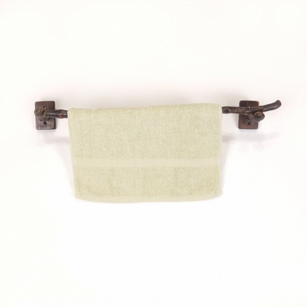 タオルを掛けるハンガー部は、途中ゆるい曲がりのある 竹の根の流木で、空洞はありません。