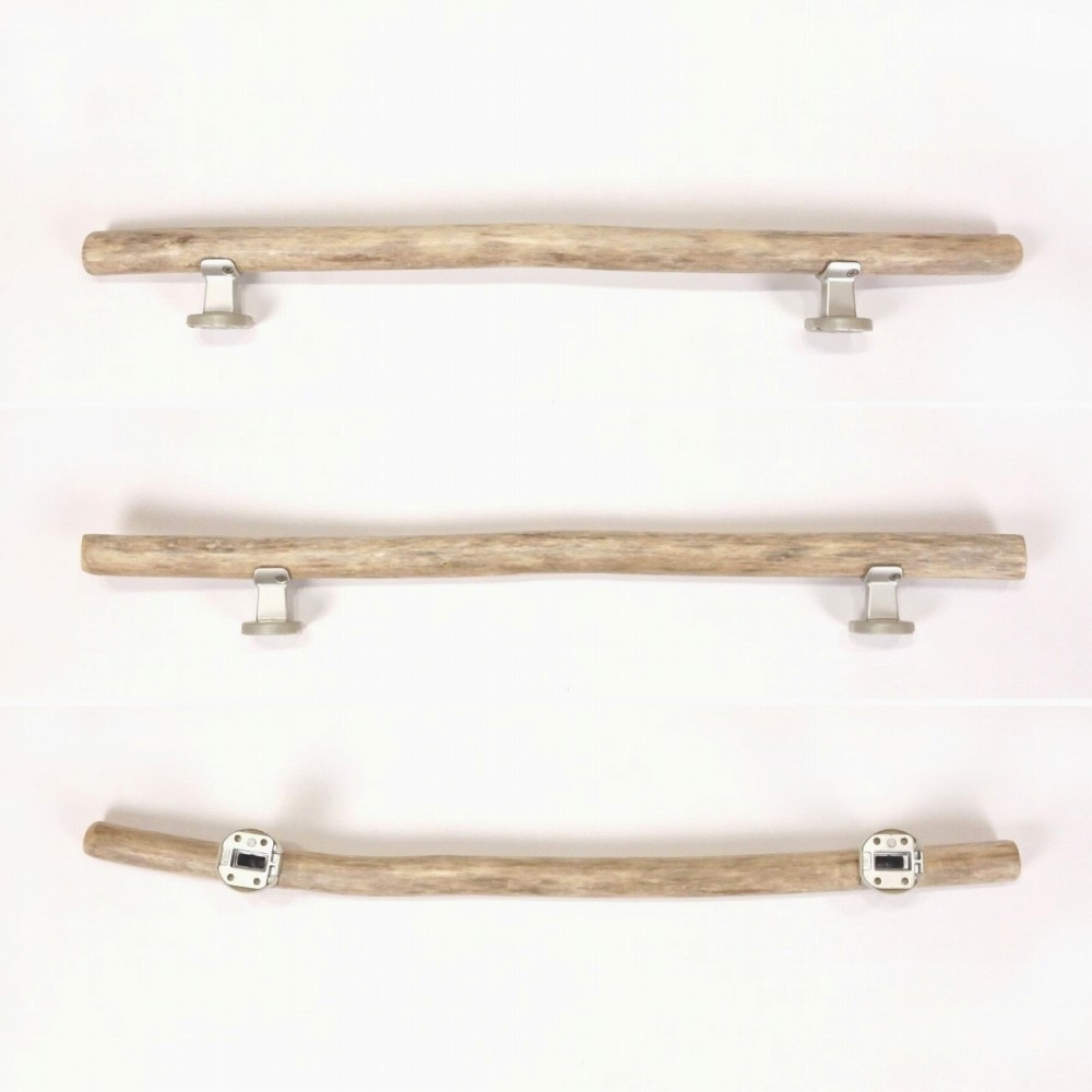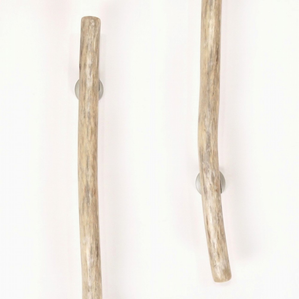 【温泉流木】シルバーに光沢する細身流木のドアハンドル・手すり 木製 自然木 流木インテリア