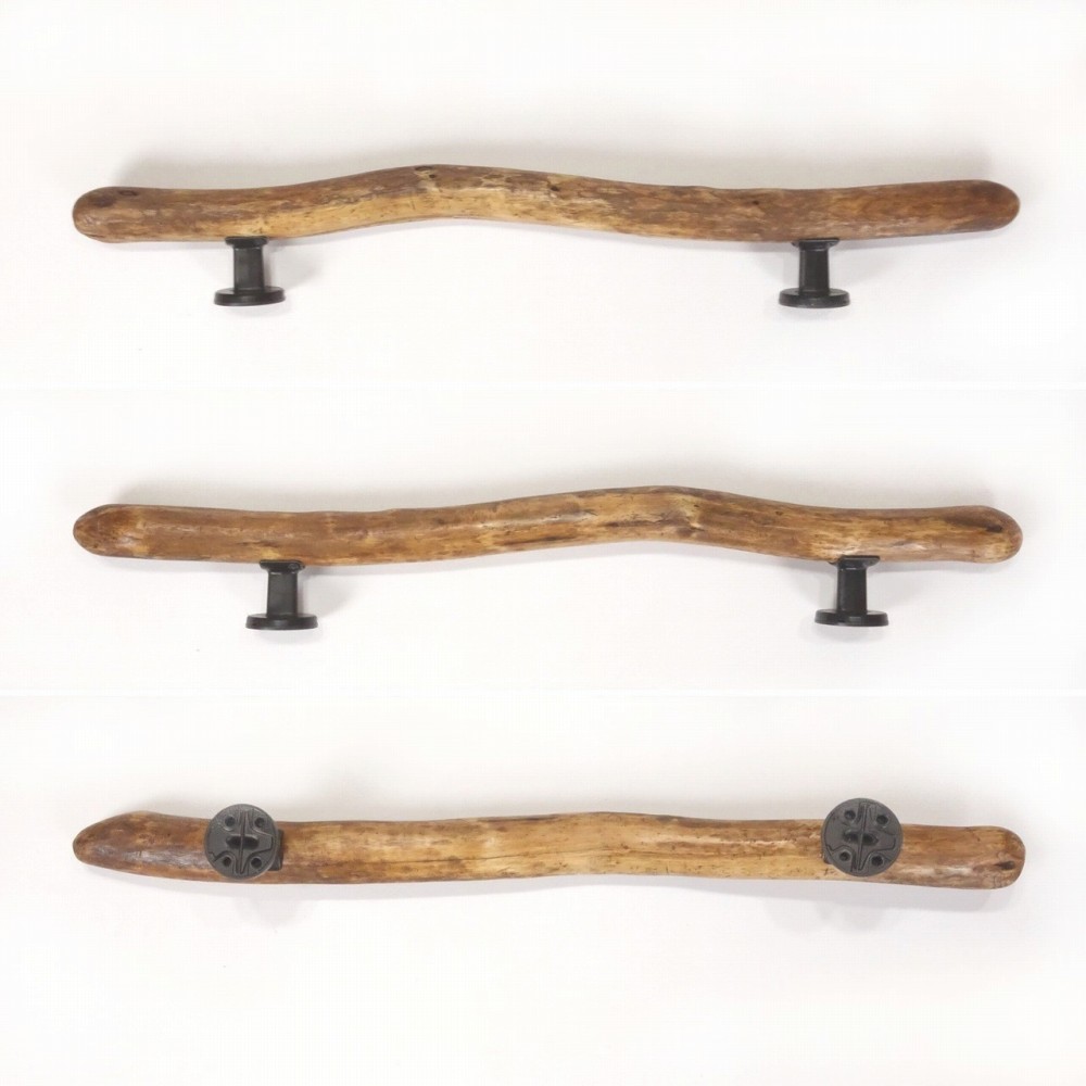 【温泉流木】先丸なめらか柿渋塗り流木ドアハンドル・手すり 木製 自然木 流木インテリア