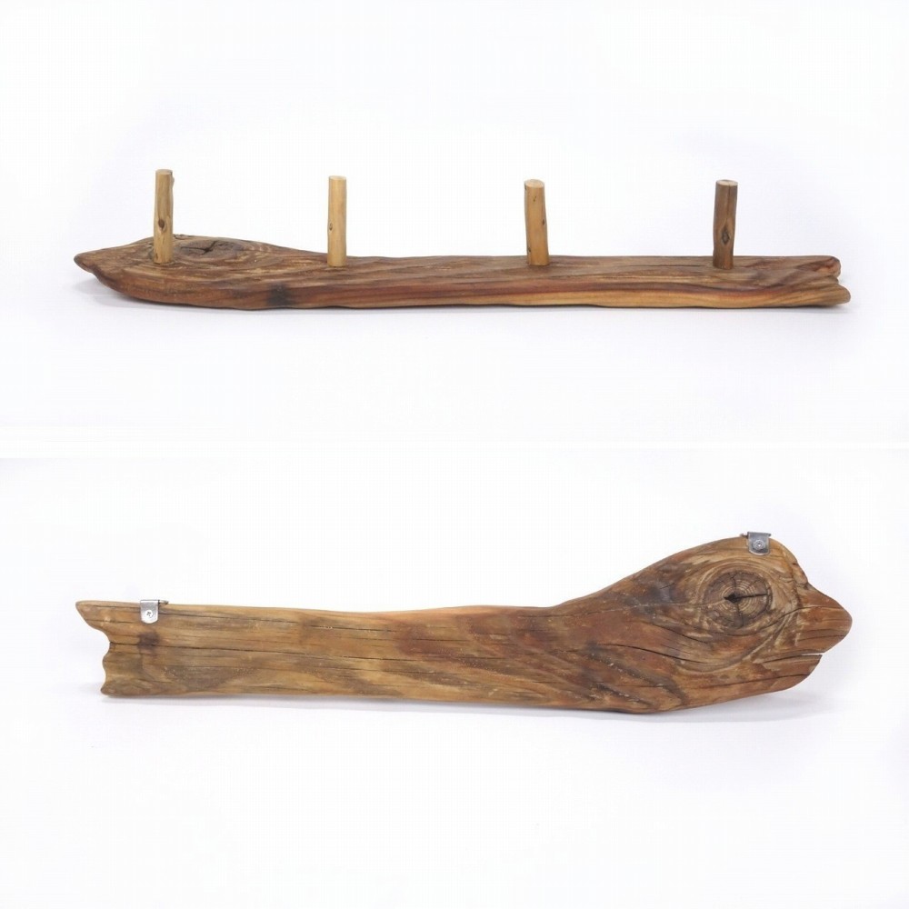 4本の飛び出るフックは 枝流木、4本とも 先には小さな枝分かれの突起があり、掛けているものの止めとなります。