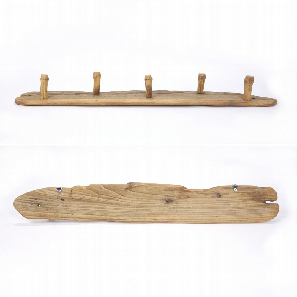 5本の飛び出るフックは 竹の根の流木、5本とも 手前に節があり 、掛けているものの止めとなります。