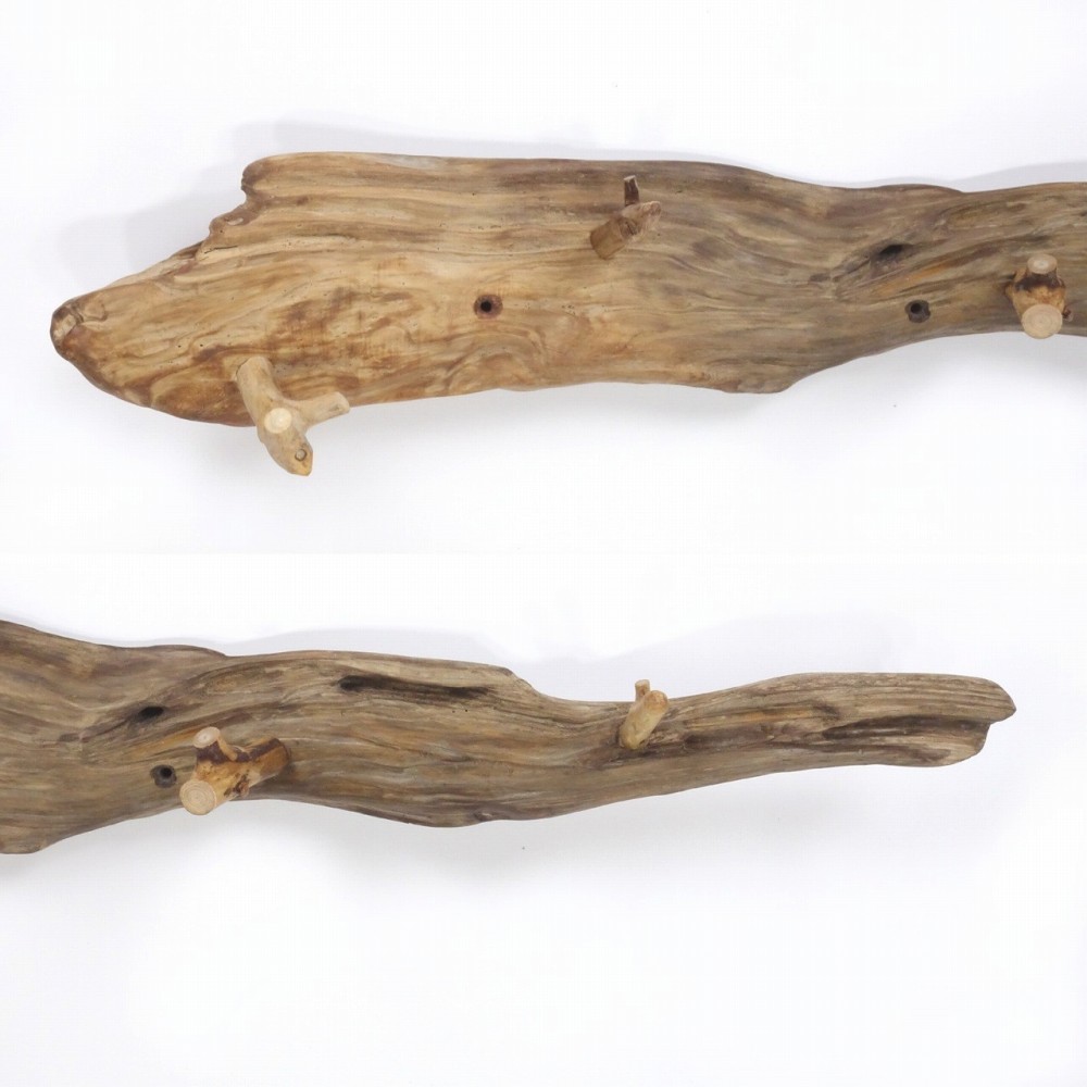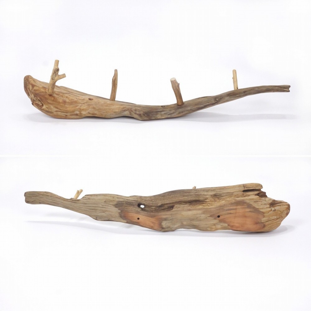 4本の飛び出るフックは 枝流木、4本とも 先に小さな枝分かれがあり、掛けているものの止めとなります。