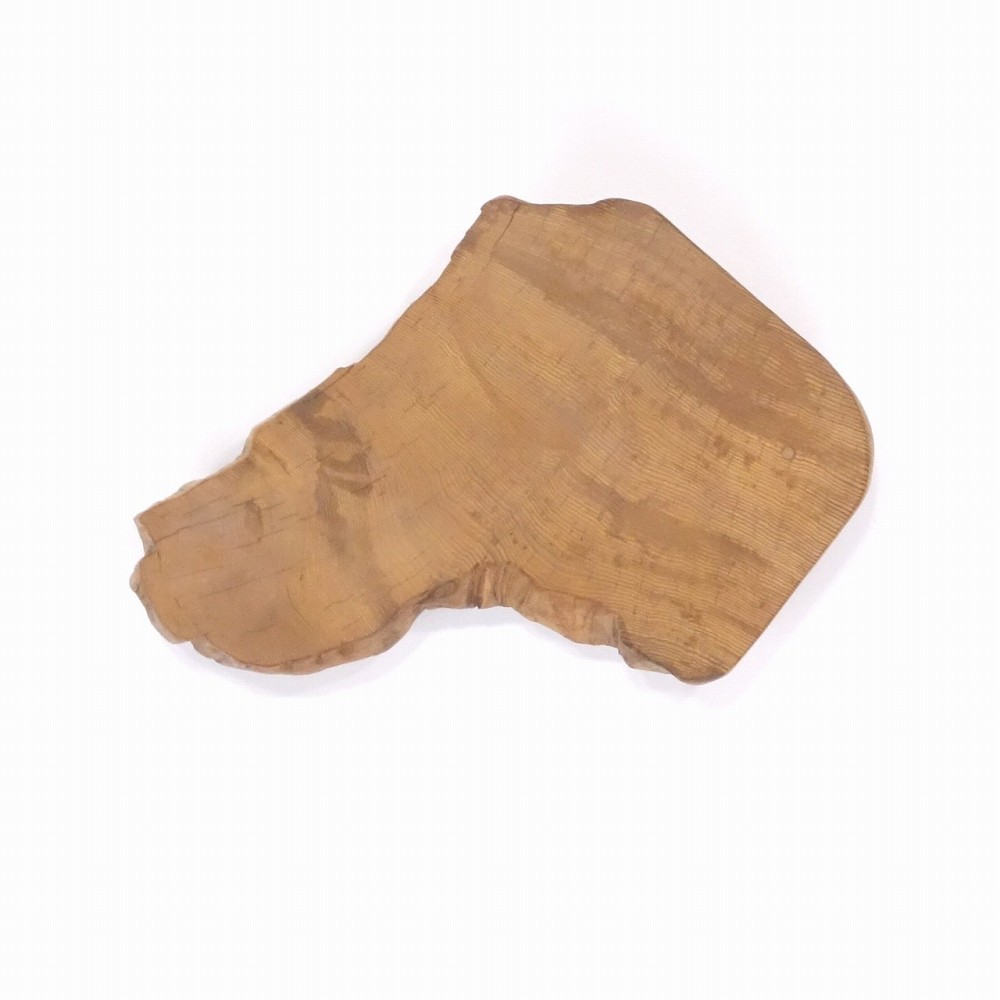屋久杉丸太の切れ端、角丸四角形の一角が欠けたような形状をしています。