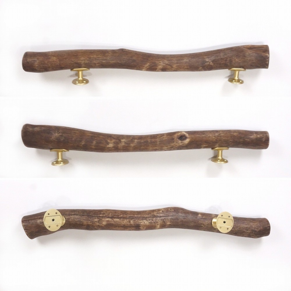 【温泉流木】どっしり太め迫力流木の柿渋塗りドアハンドル・手すり 木製 自然木 流木インテリア