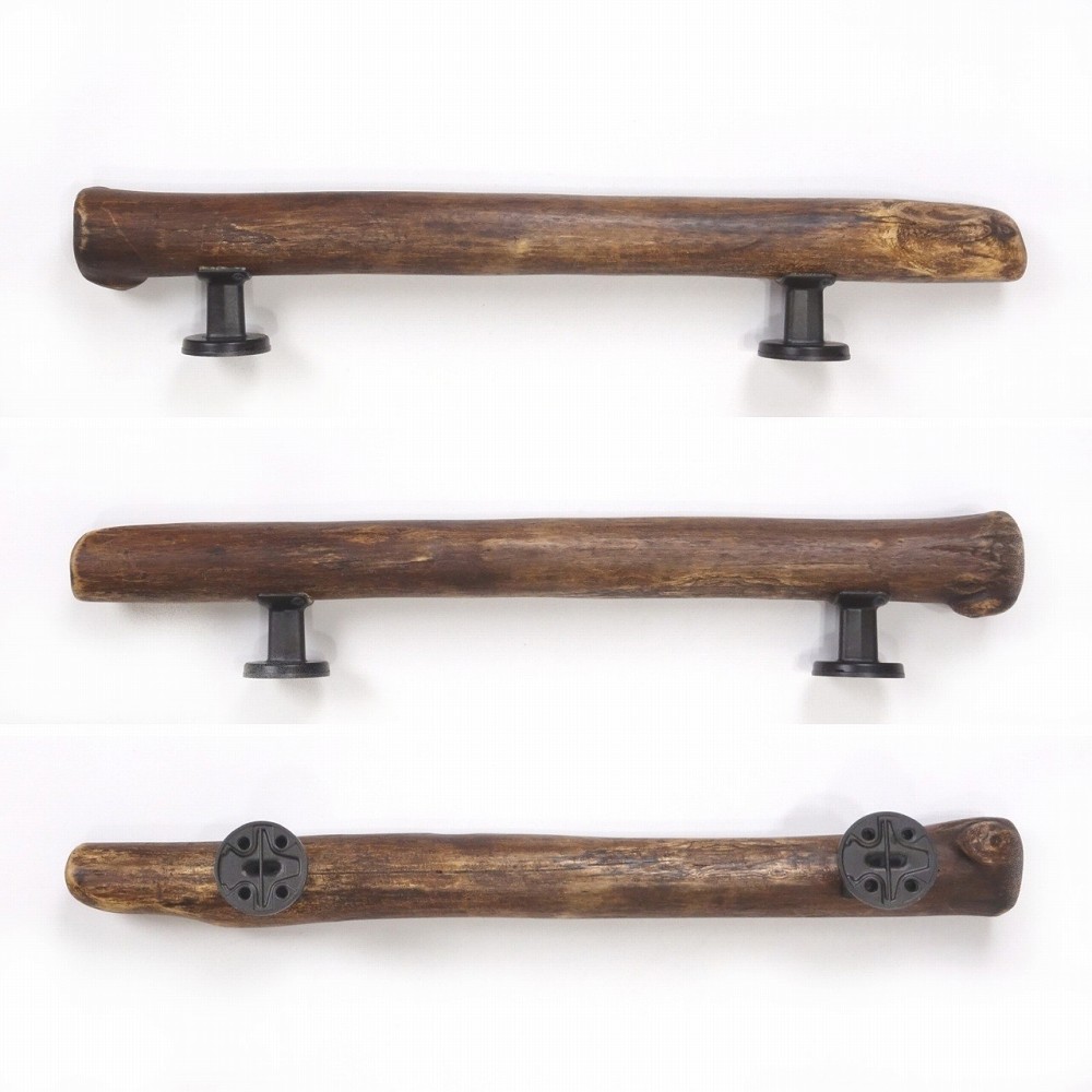 【温泉流木】竹のような和風流木の柿渋塗りドアハンドル・手すり 木製 自然木 流木インテリア